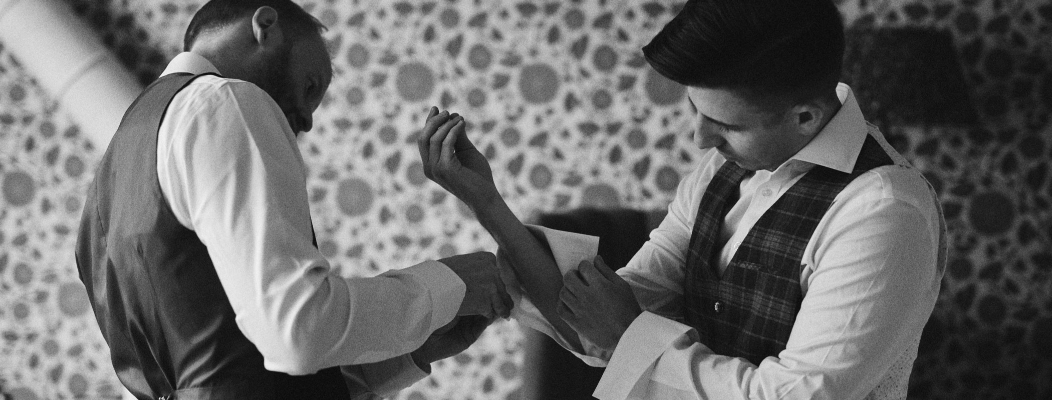 So with the outfit sorted, it was time to put everything on. And give the gifts that we had got for the boys.. Including a little gift from me too. For the groomsmen we’d got them each a pair of black and white socks from Happy Socks, and had their initials monogrammed onto each sock in small grey text. We *think they all wore them on the day, and it was nice to have something else that connected them all together.